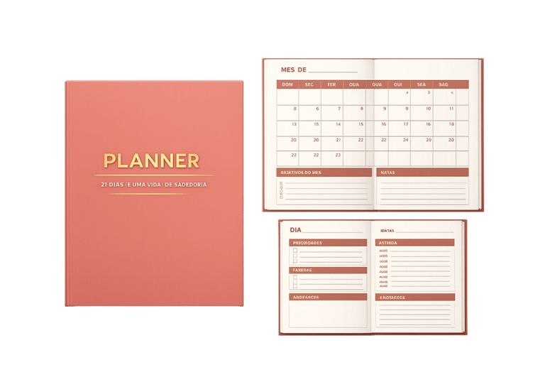 Você terá acesso ao Planner para organizar as sua atividades diárias, para conseguir organizar todas as sua tarefas e não deixar de bem definido seu tempo com Deus